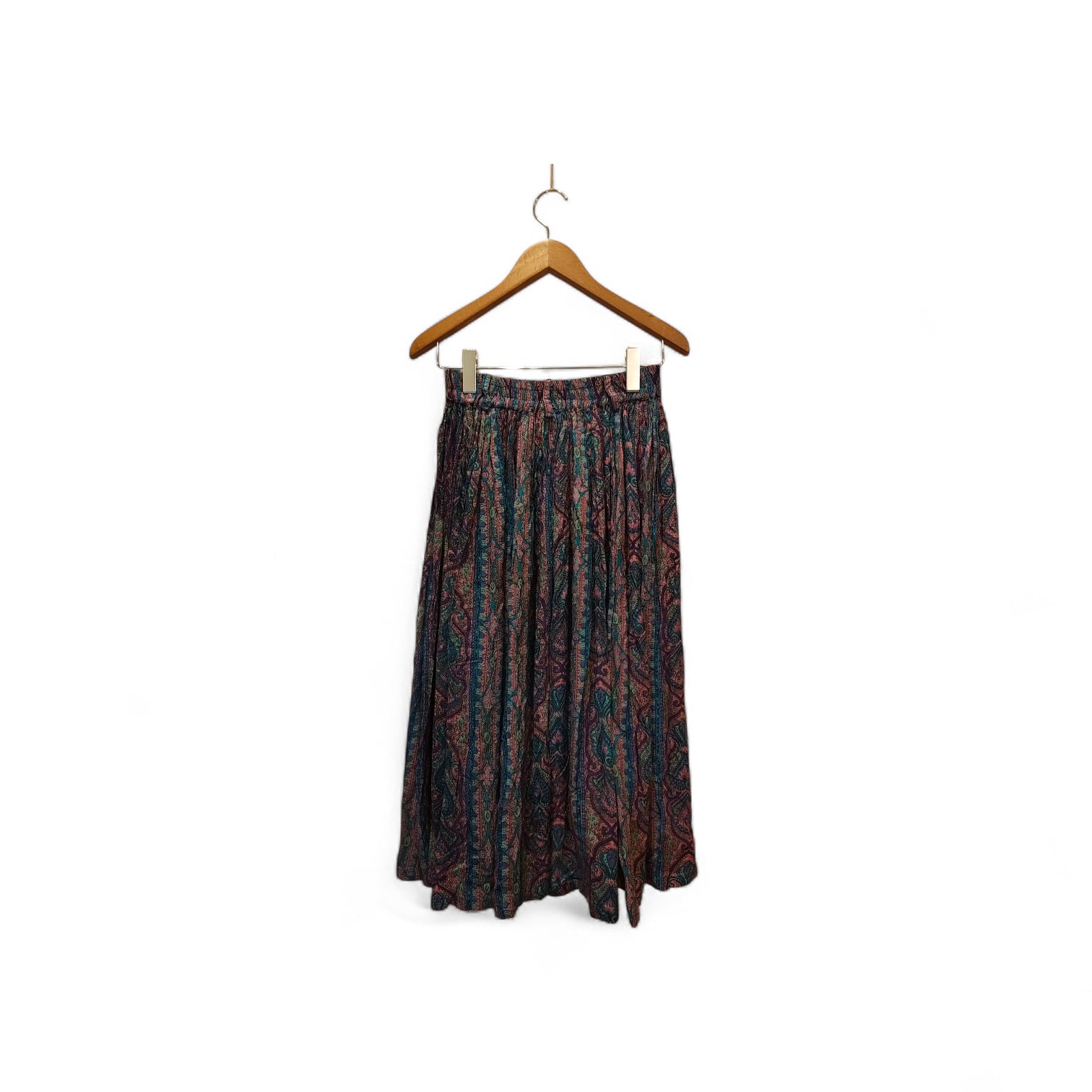 レーヨン特有の落ち感と、ヴィンテージらしい表情豊かな総柄が目を惹く一着です。