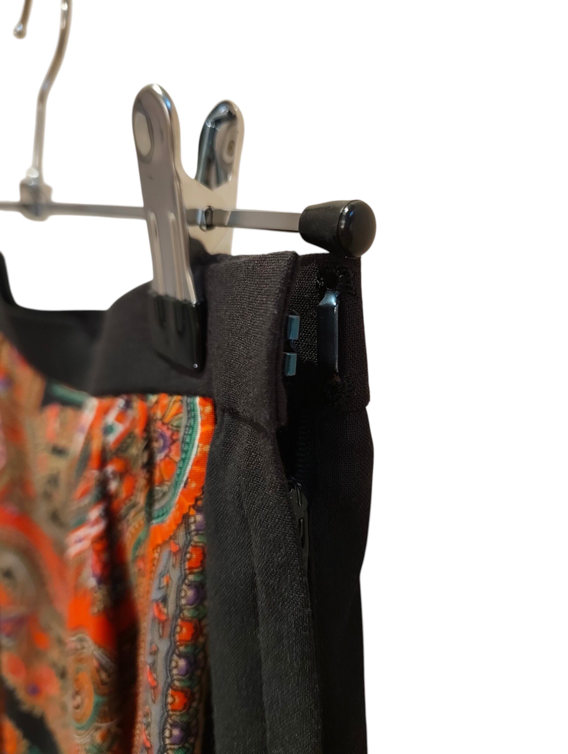 スカートはウエストが一周約62cmの設計で、現代のサイズ感でいうとXS〜S相当です。ウエストはタイトめですが、ヒップ周りは一周約92cmと標準的なゆとりがあるため、ウエスト位置に合わせてメリハリのあるシルエットをお楽しみいただけます。