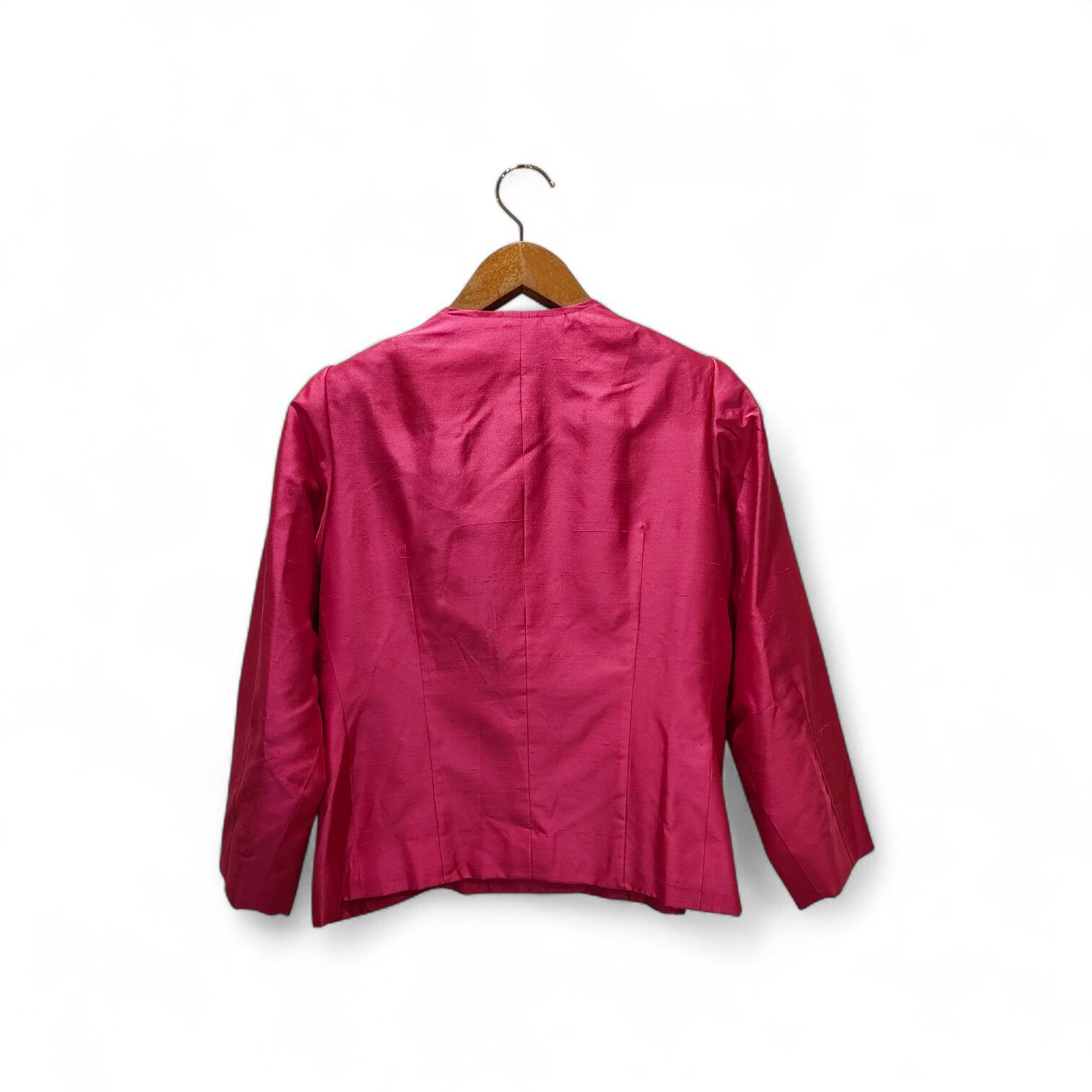 70-80年代頃の日本で、デザイナーの手によって一針ずつ丁寧に仕立てられた、シャンタンシルクのセットアップです。